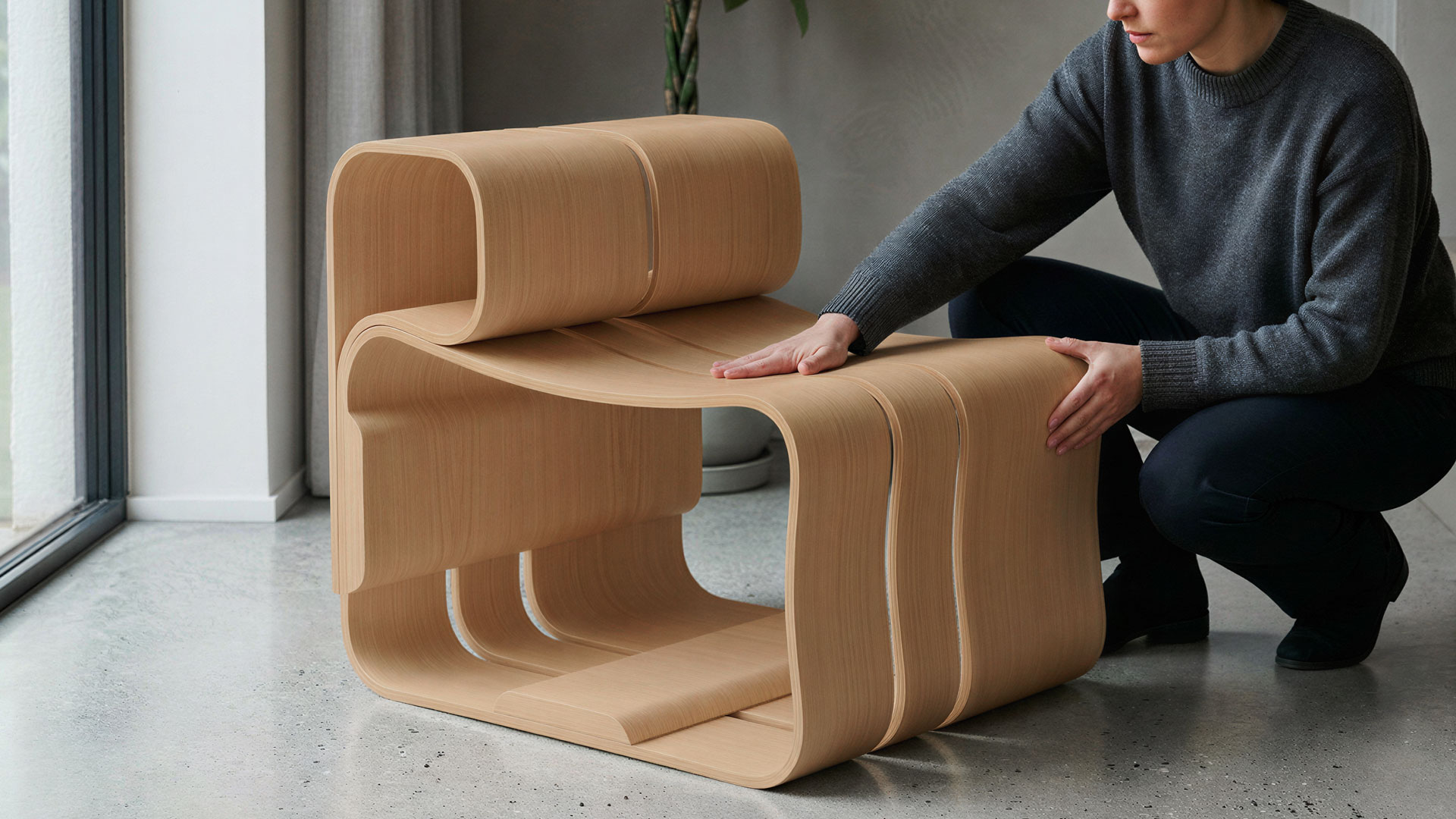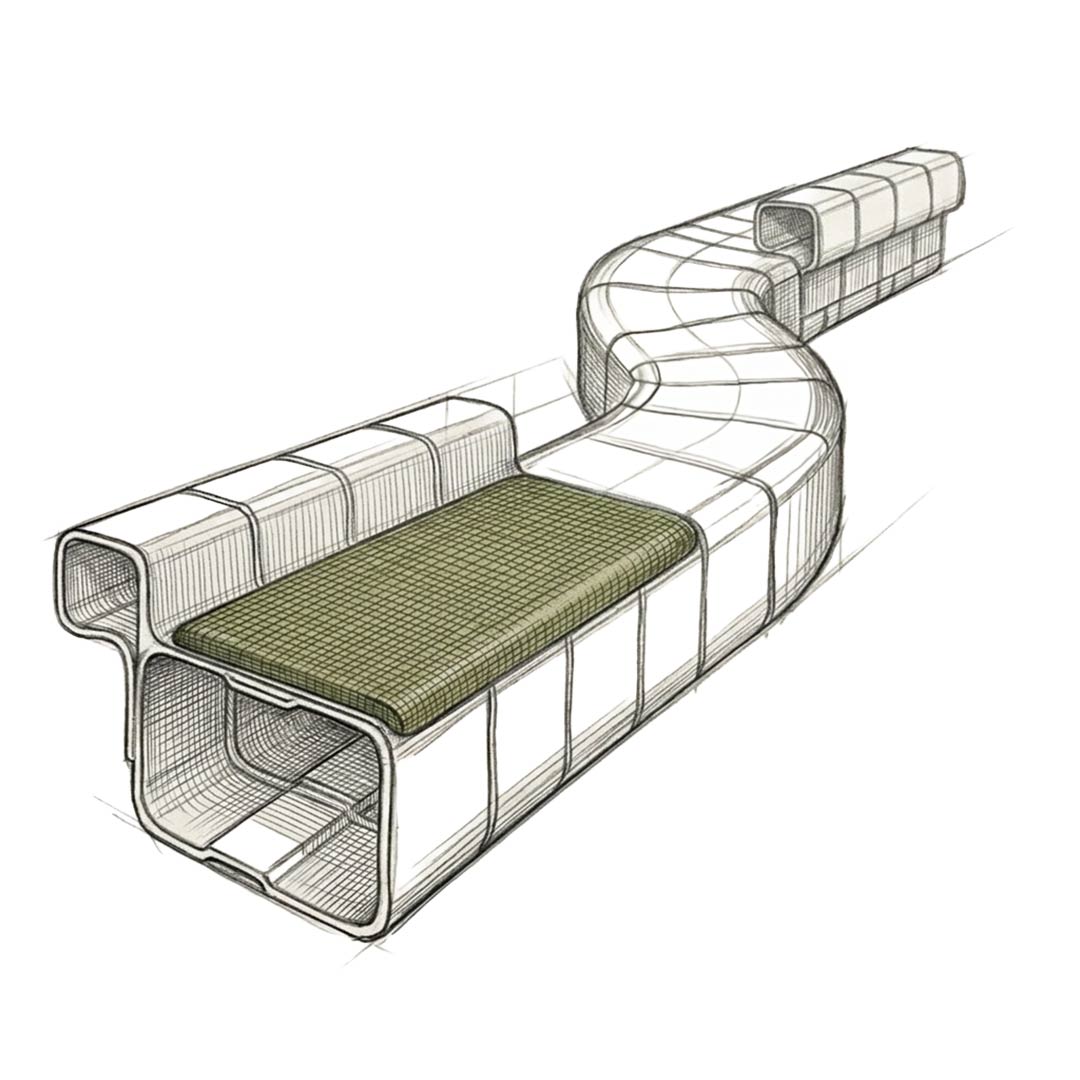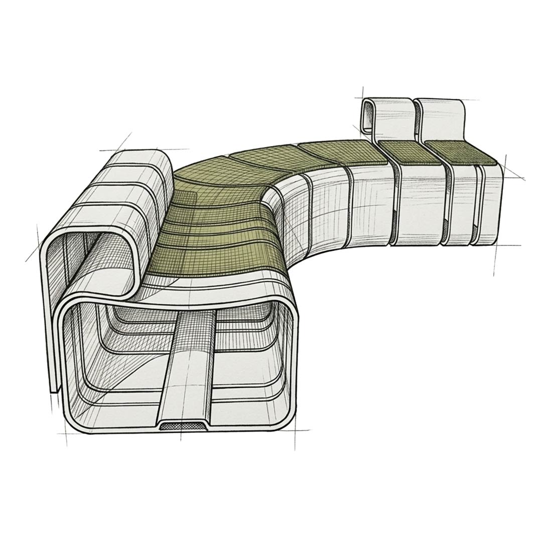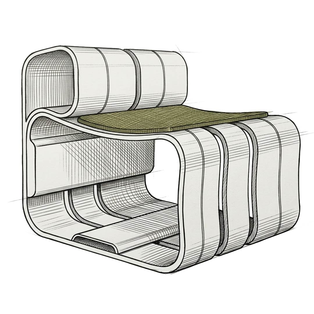 The module is conceived for infinite scalability from an ergonomic armchair to a system for collective spaces. Kirizuna responds to the growing demand for contract and hospitality solutions that combine structural performance, aesthetic identity and environmental responsibility. Every minimal cross-section, made possible by the extraordinary strength of SUPERTIMBER, reduces visual weight without compromising structural integrity.
