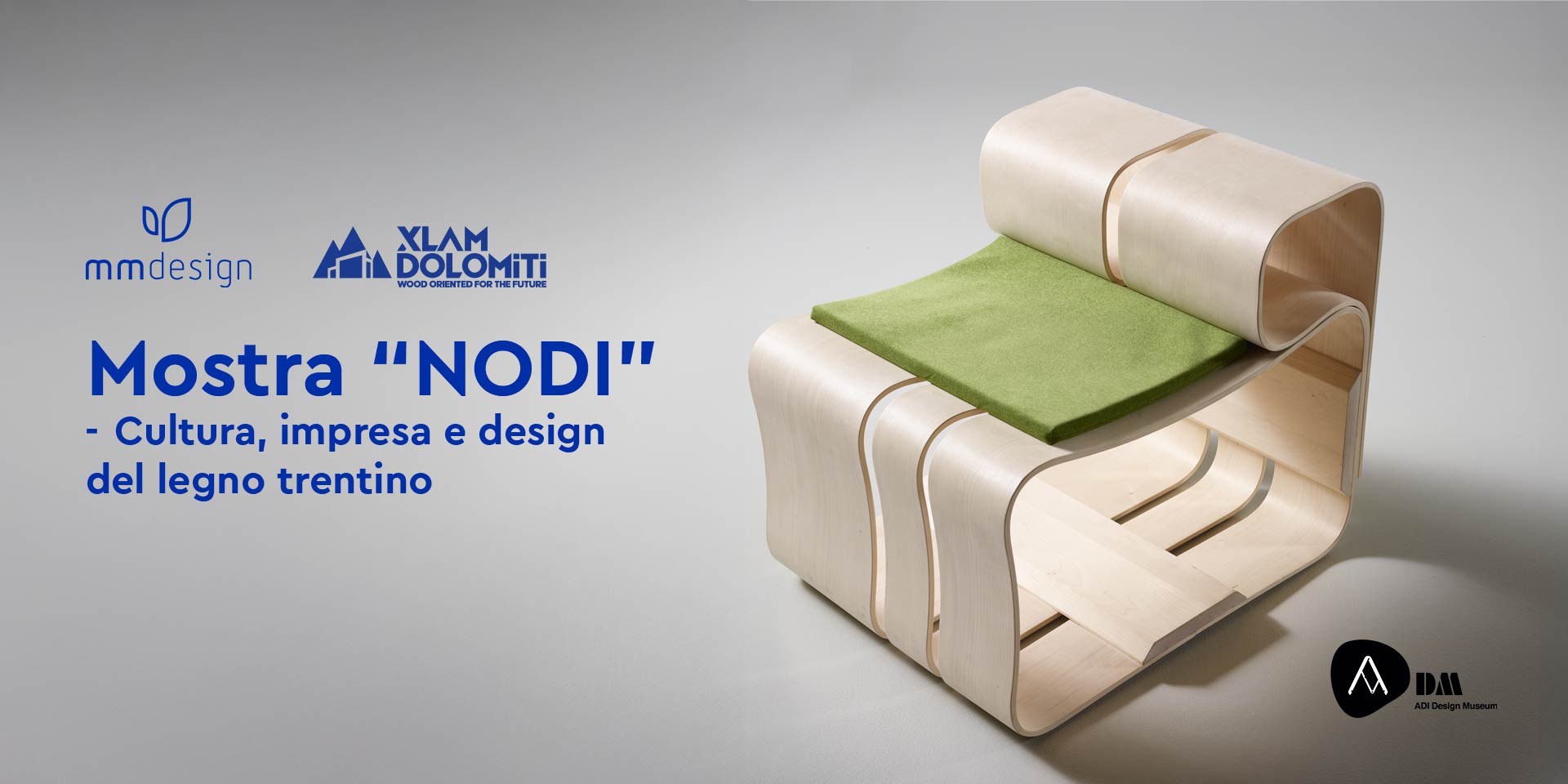 MM Design presents Kirizuna, a seating system born from the collaboration with Xlam Dolomiti, a company from Trentino with over a decade of know-how in structural timber panel processing. The project was conceived for NODI — Culture, enterprise and design of Trentino wood, the collective exhibition inaugurated on 27 March 2026 at the ADI Design Museum in Milan, promoted by the Autonomous Province of Trento with Trentino Sviluppo and Trentino Marketing.